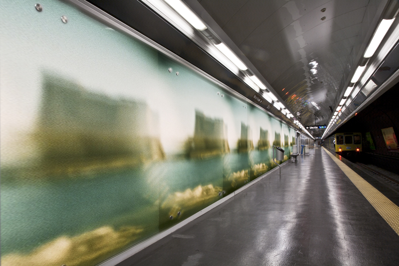 L’istallazione di quest’opera prevede una stampa diretta su plexiglas per amplificare l’idea della città vista dal finestrino del treno e per rendere l’opera stessa una finestra sul mondo sovrastante. In questo caso la finestra affaccia su una realtà altra, in qualche modo astratta, perché non è semplicemente una riproduzione della città, ma piuttosto una visione. Pur raffigurando i luoghi più rappresentativi di Napoli, quest’opera trasmette delle sensazioni cittadine come la velocità, la frenesia, il caos, che sono propri della metropoli moderna, vi è infatti una rivisitazione che rende quasi irriconoscibile il luogo fotografato; si percepisce la presenza di persone, macchine o monumenti, ma non si vedono, creando il paradosso di una fotografia invisibile. Inoltre l’immagine così ottenuta della Napoli a cielo aperto che perde i suoi connotati caratterizzanti e diventa luogo del mondo, si rapporta all’anonimato della metropolitana che non possiede un identità geografica precisa.